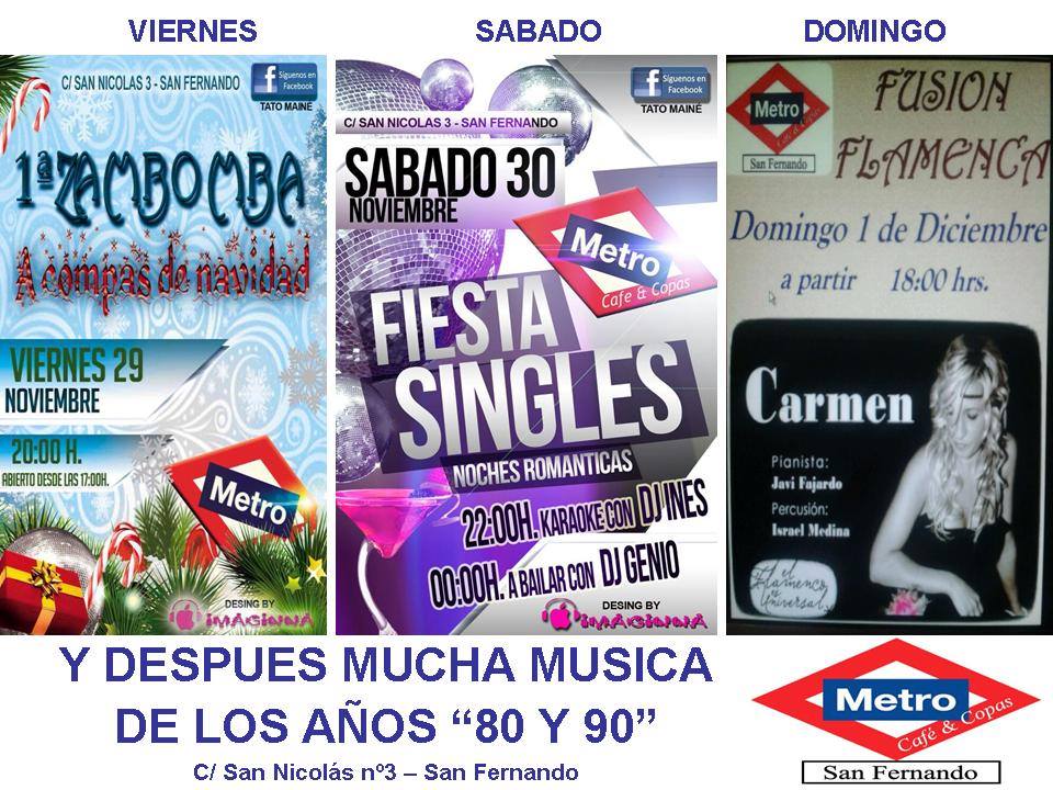 Hoy viernes 29 de noviembre, a partir de las 17 horas empezará la fiesta, siendo a las 20 horas la primera Zambomba en El Metro de San Fernando, con la actuación de “A compás de Navidad”.