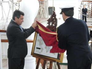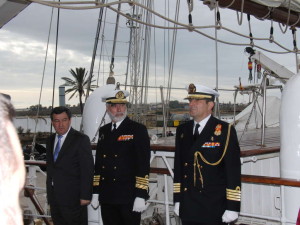 Durante la ceremonia, a la que asistieron el alcalde de la ciudad, José Loaiza, y el Almirante de la Flota, Santiago Bolibar, el regidor municipal entregó el bastón de mando de la ciudad al Comandante del buque, capitán de NavÃo Enrique Torres.