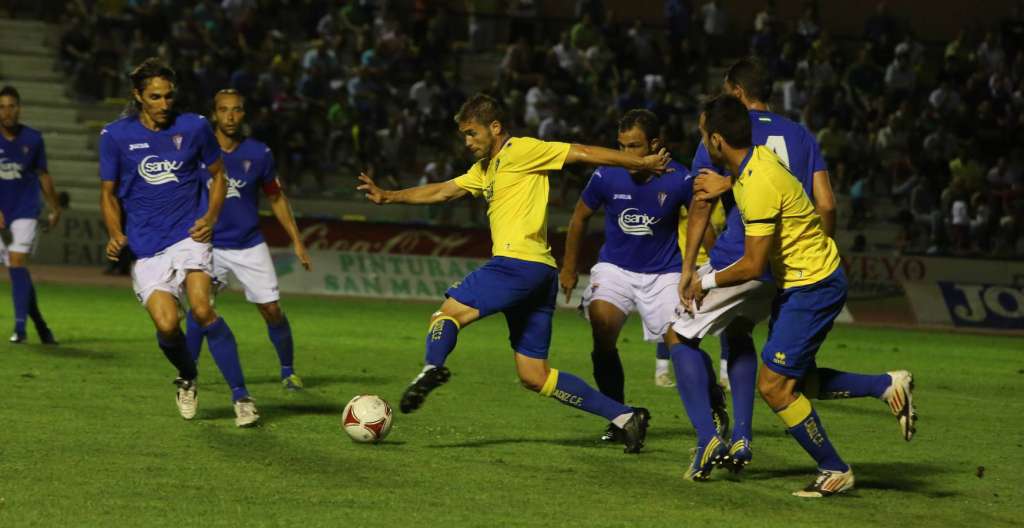Comenzó el partido con dominio alterno de ambos equipos aunque la presión de los azulinos hacía que el equipo amarillo no carburara en el centro del campo,donde se notó en demasía la ausencia de Nafti. Pero como suele pasar en el fútbol, en el primer acercamiento del Cádiz al área azulina (min.8) llegó el gol de Perico que con la zurda y en el límite del área puso el 1-0 en el marcador. Gran gol.