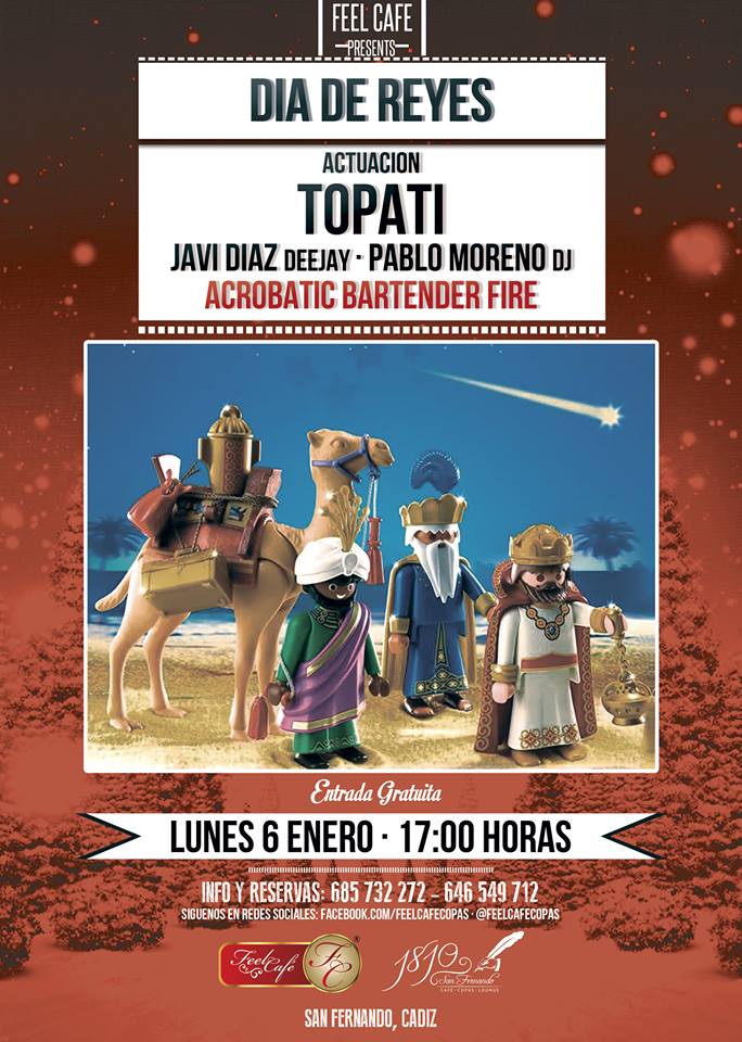 Para el dÃa de Reyes; vuelven a Feel Café el grupo To Pá Ti, los dos djs residentes de la Sala; Javier DÃaz, Pablo Moreno y sin duda todo un espectáculo con Acrobatic Bartender fire