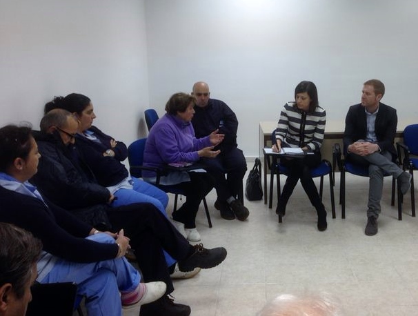 La portavoz del grupo municipal del PSOE de San Fernando, Patricia Cavada y el Concejal encargado de los temas de empleo Conrado Rodríguez, se reunieron esta mañana con una amplia representación de los trabajadores y trabajadoras de Alcomar SL, encargada del servicio de limpieza de los astilleros de Navantia. Una actividad en la que se prevé una reducción de la plantilla considerable, en torno al 30%, ya que la intención de la empresa es la de reducir la partida que destina a estas labores en un millón de euros. Precisamente el contrato actual acaba el próximo 28 de febrero, momento en el que Navantia sacará a concurso un nuevo contrato con un recorte llamativo del presupuesto, lo que conlleva una disminución de la frecuencia en la limpieza, las zonas y por lo tanto del personal que se precisa para sacar adelante esta tarea.