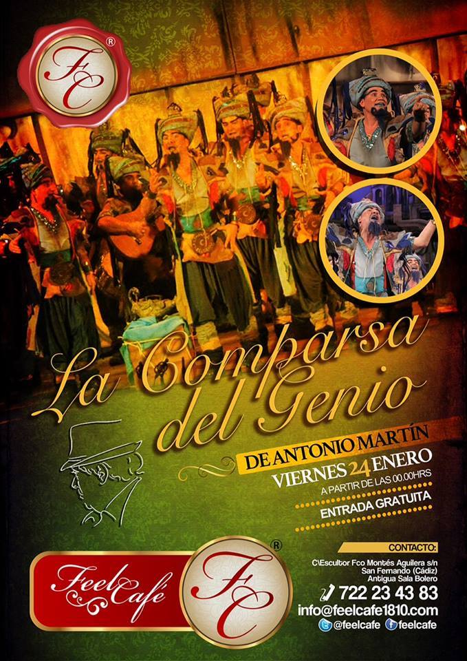 Viernes 24, a partir de las 22horas, La comparsa del Genio de Antonio Martín, ganadora del COAC 2013. Ángel Subiela supo dirigir a esta comparsa y junto con Antonio Martín llevaron a su agrupación a lo más alto.