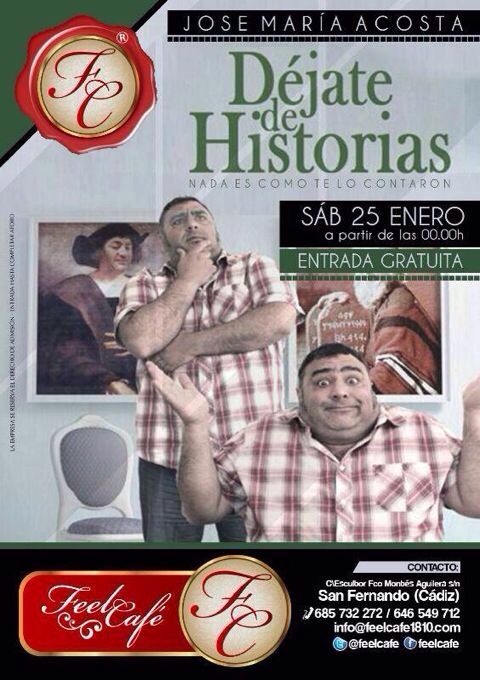 Sábado 25, a partir de las 00horas, monólogo “Déjate de Historias” (nada es como te lo contaron) a cargo de José María Acosta Paúl, “Niño Malet” que además de llevar