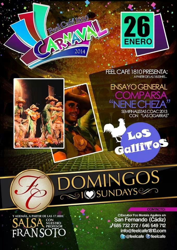 Comenzó en el Carnaval 2008 con “El último escuadrón” poniendo letra y música. El año pasado con la comparsa “Las Cigarras” quedando semifinalistas. Y para el concurso del COAC 2014 actuarán bajo el nombre “Los Gallitos”.
