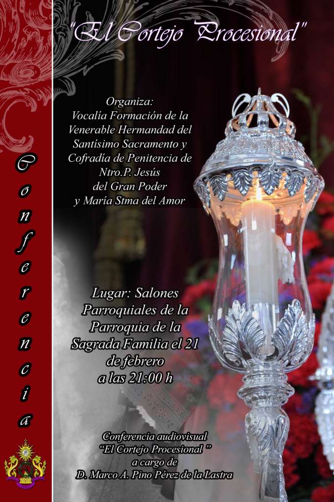 El próximo día 21 de febrero dentro del programa de formación que la Hermandad del Gran Poder, encargada de dicho menester tiene programada, se llevará a cabo una Conferencia audiovisual bajo el titulo "El Cortejo Procesional". Dicha conferencia estará a cargo del conocido cofrade y que fuera Hermano Mayor de la Hermandad de Columna Marco A. Pino Pérez.