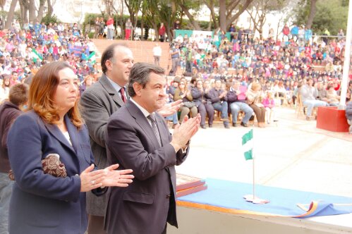 Más de mil escolares de diferentes centros educativos, acompañados de sus profesores, han asistido en el Parque Almirante Laulhé al izado de la bandera andaluza y la entrega de premios del Certamen Escolar Día de Andalucía, organizado por la Delegación Municipal de Educación. El acto ha contado con la lectura del poema ‘Andalucía' de Manuel Machado y de varios artículos del Estatuto de Autonomía, a cargo de los alumnos Álvaro Benítez del colegio Carmelitas; Celia de Ramón, del colegio Almirante Laulhé; Débora Noel, del colegio Servando Camúñez; y Cristina Torrejón, del colegio Casal Carrillo.