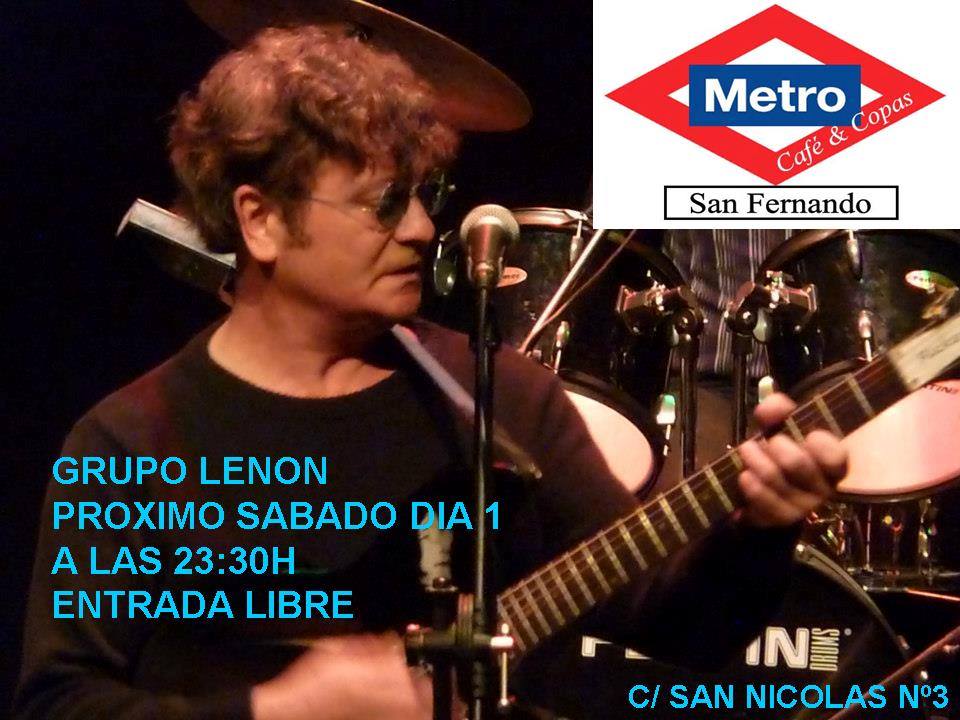 1974660_1443904682512119_1906763818_n“Grupo Lennon”  , cuya formación actual lleva 3 años, está compuesto por cinco profesionales con largas carreras musicales; Paco Cosano (teclado), músico mítico de Cádiz, ha estado en diversas bandas, el cual vive por y para la música. José Luís Torrero (guitarra), profesor de música. Miguel Ángel Alsedo (batería), ha sido miembro de varios grupos como “ADN”. José Manuel Márquez, (bajista), miembro de otra banda “Nacho y los Browns”. Fran Serrano cantante del grupo, -Lenon-, músico desde el año 88, comenzó con “Los Pájaros”, y editaron 4 discos, siendo teloneros del grupo “La Guardia”. Con su banda “Cero 91” tocaron junto con “Mecano”, participaron en la vuelta Ciclista a España en el año 91. Participó en el primer programa de “Lluvia de estrellas”, con otra formación “Forever”, Sacó un disco en solitario, “Fran solo” con apoyo de Canal Sur, y junto a su amigo y bajista Celio Sirre compone temas para  otros artistas.