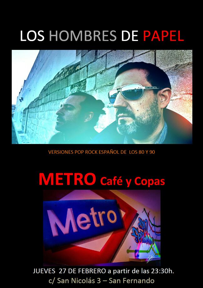 En el local de copas El Metro de San Fernando el jueves 27 a las 23 horas, dando comienzo el Día de Andalucía con entrada gratuita, tendrá lugar un Tributo a los 80´s y 90´s  a cargo de “Los Hombres de Papel”.