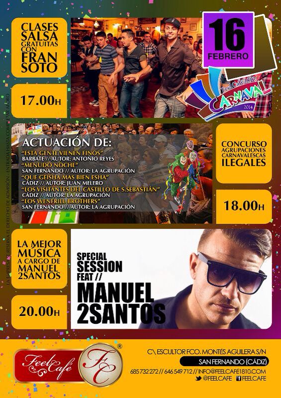 Feel Café domingo 16 de febrero; salsa con Fran Soto, concurso de Ilegales y Dj Manuel 2Santos