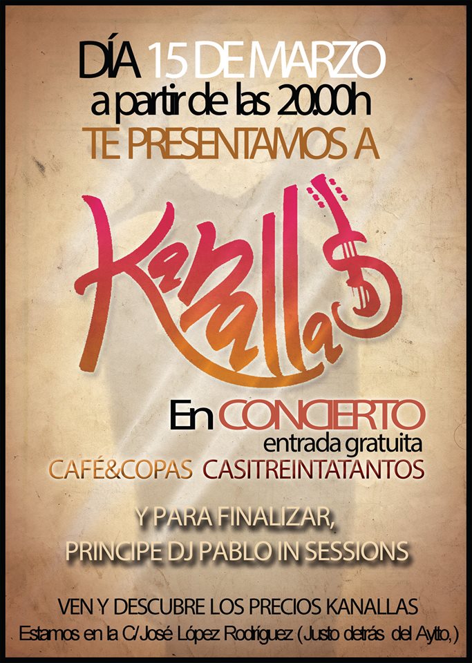 El día 15 a partir de las 20.00 horas actuará también el ya conocido grupo flamenco Kanallas, quienes amenizarán la tarde noche con sus ritmos flamencos y su buen humor.