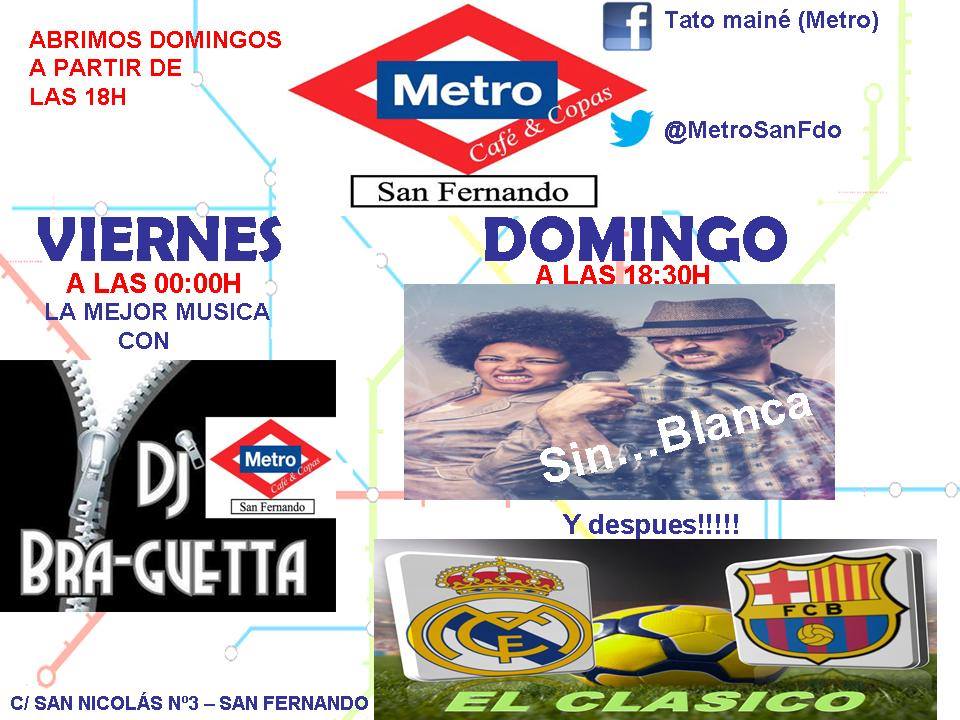 El Metro de San Fernando ubicado en la calle San Nicolás nº3, este viernes 21 de pinchará Dj Bra Guetta, dj residente, animará la noche pinchando música de los ochenta y de actualidad haciendo un repaso por los mejores temas del año 2013.