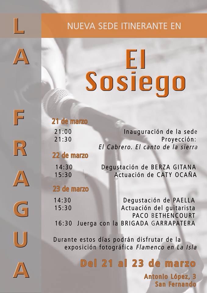 La Asociación Cultural Flamenca La Fragua del 21 al 23 de marzo tendrá su sede en el Bar El Sosiego, situado en la Calle Antonio López nº 3.