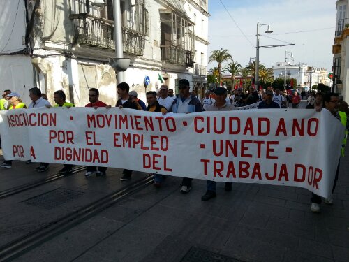 Tras la concentración pacífica en la Plaza de Rey decenas de parados, se han dirigido caminando a Cádiz, ante la Subdelegación del Gobierno, para la lectura de un manifiesto.