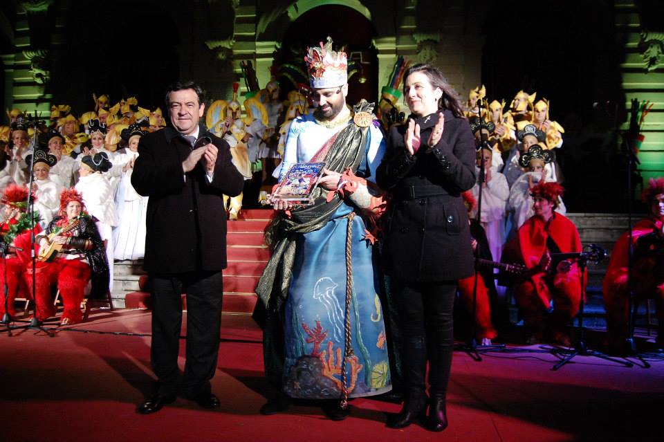 Después de un carrusel del coro por las calles del centro de San Fernando, donde el pregonero destacaba en lo alto disfrazado de Poseidón, dios mitológico del mar y los océanos, bajó de su batea, no sin antes encandilar al público con el coro El Orfeón, tercer premio del Concurso Oficial de Agrupaciones Carnavalescas 2014 del Gran Teatro Falla. Todo ello sucedía después del capítulo protocolario de imposición de los antifaces de las colombinas y proclamación de la colombina mayor, Nuria Otero Calvillo, además de que se entregaran los pierrots honorífico, a Felipe Rivero Varela; el pierrot de plata a la FIPE, el pierrot de oro de José Manuel Alba Espino y un recuerdo a Antonio Macías Aragón (Perete) por la dedicatoria del Carnaval.