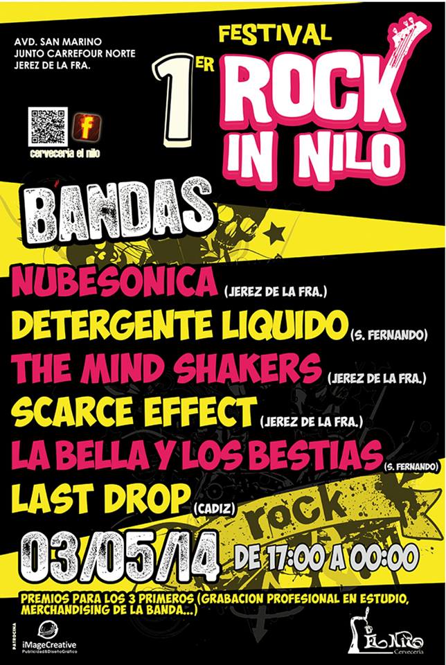 Este sábado 3 de mayo a las 17 horas, dos bandas de música de San Fernando Detergente Líquido y La Bella y los Bestias, participarán en el primer Festival Rock in Nilo en Jerez de la Frontera, en la Cervecería El Nilo situada en la Avda. San Marino, en Jerez de la Frontera.