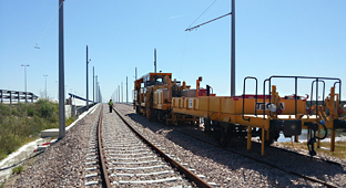 Los trabajos de nivelación han comenzado con la compactación del balasto, que se lleva a cabo con una máquina bateadora o tren de obras, que también se encarga de dejar la superestructura de vía en su cota definitiva para el paso de los trenes. Finalmente, se soldarán los raíles y se volverá a extender otra capa de balasto sobre las vías.
