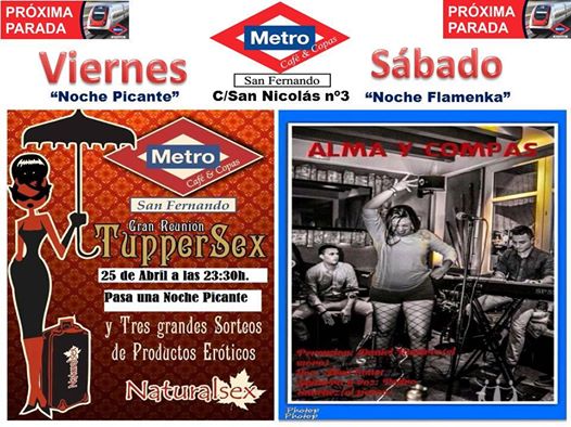 Metro San Fernando viernes 25 de abril "TupperSex" y sábado la actuación de "Alma y Compás"