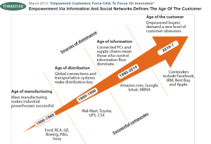 Según Forrester, estamos en la era del consumidor. Esta se inicio en el 2010 aproximadamente y viene a sustituir a la anterior era de la información, o como muy acertadamente acuño Mercedes-Benz en un spot televisivo, “infosicación”