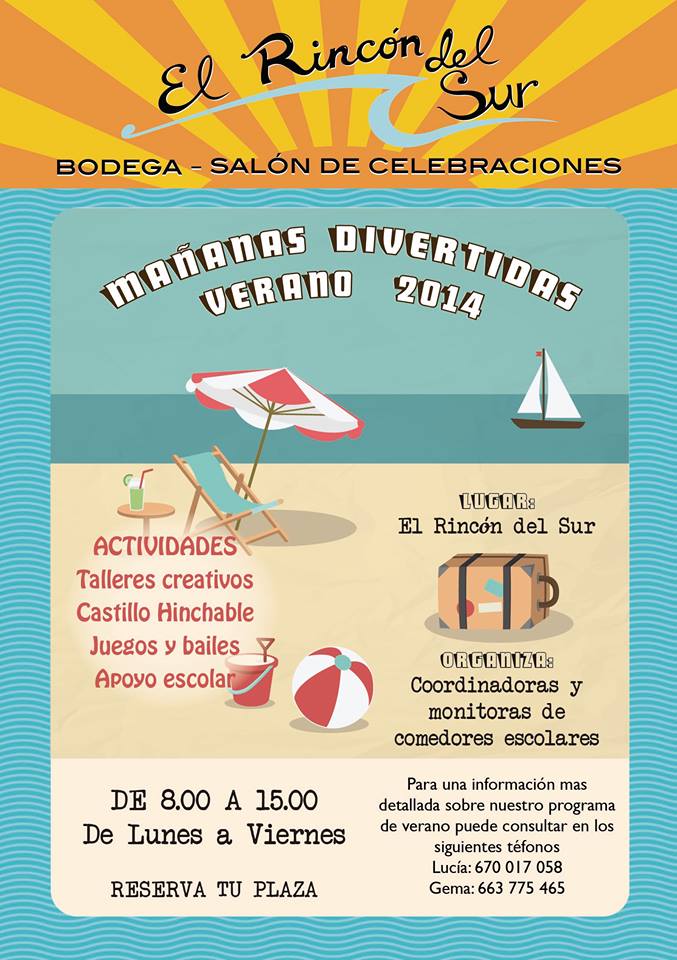 El salón de celebraciones El Rincón del Sur de San Fernando, en la calle Ferrocarril nº9, en el Polígono Fadricas en San Fernando, dedican las mañanas del verano a los más peques.