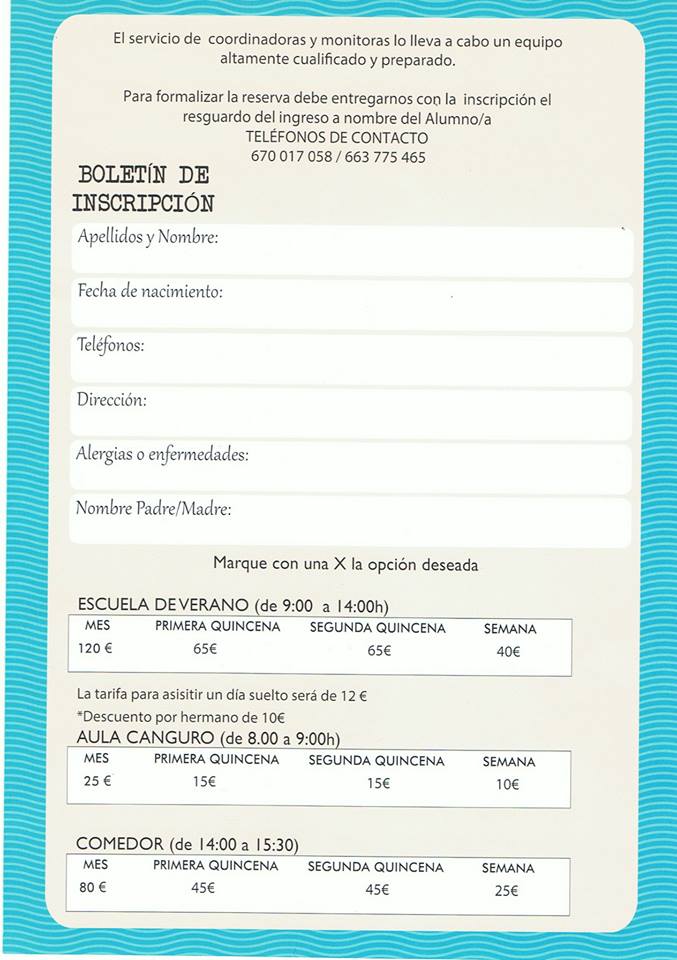 Las reservas de plazas ; Lucía; 670 017 058. Gema; 663 775 465