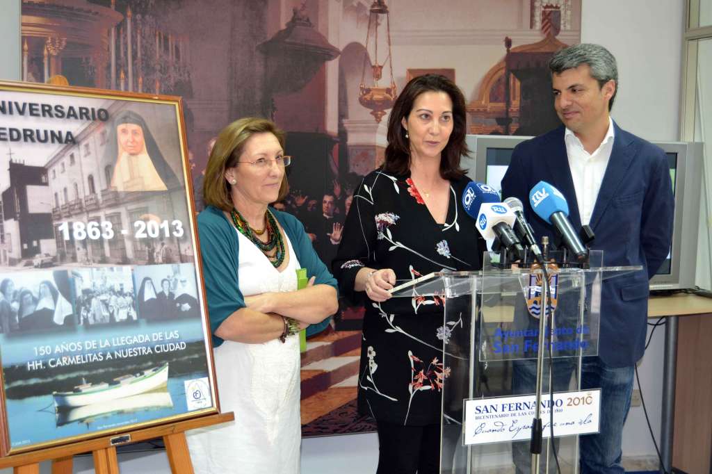 El andalucista Francisco J. Romero, y las profesoras de las Hermanas Carmelitas Antonia Serrano e Isabel María han presentado esta mañana la exposición fotográfica retrospectiva '150 años de un modelo educativo', iniciativa enmarcada en el programa de actos organizado por este centro escolar para conmemorar el 150 aniversario de la llegada de las Hermanas Carmelitas a La Isla. Esta exposición, que cuenta con la colaboración de la Delegación Municipal de Cultura, abrirá sus puertas el próximo lunes 12 en la Casa de la Cultura a las 19.00 horas y permanecerá abierta hasta el 16 de mayo en horario de 9.30 a 13.30 horas y de 17.00 a 21.00 horas.