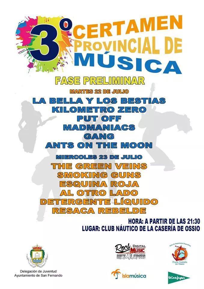 La delegada municipal de Juventud, Úrsula Ruiz, ha anunciado que mañana martes y el miércoles por la noche se celebrará la fase preliminar de la nueva edición del Certamen Provincial de Música, que por tercer año consecutivo organiza la Delegación Municipal de Juventud del Ayuntamiento de San Fernando.