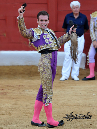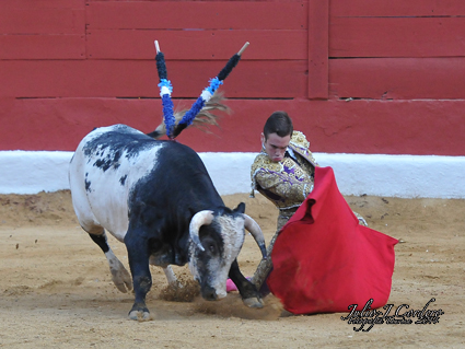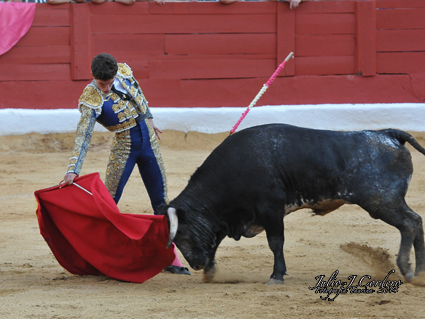 Jasé Baizá de San Fernando, salió a por todas con capote a su novillo conforme iba cogiendo confianza, fue templando la faena, también corto las dos orejas y rabo.