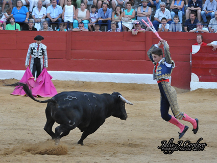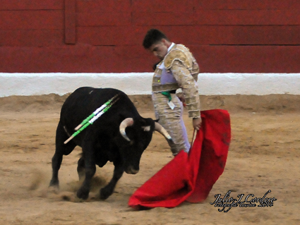Manuel Navarro de El Puerto estuvo bien apuntando buenas maneras, haciendo las cosas con gusto y torería. El fallo a espadas le costó el triunfo quedando el premio en ovación y sin fotos por la falta de luz.