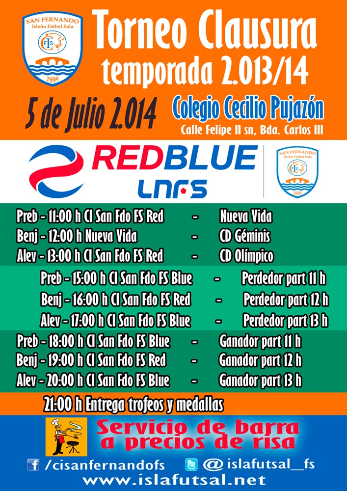 Este próximo sábado 5 de Julio en el colegio Cecilio Pujazón el club Isleño San Fernando FS cerrará la temporada como la empezó, en familia. Se jugará un torneo en formato triangular en las categorías prebenjamín, benjamín y alevín.