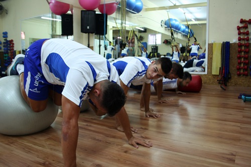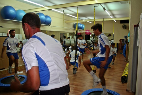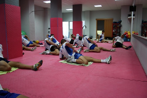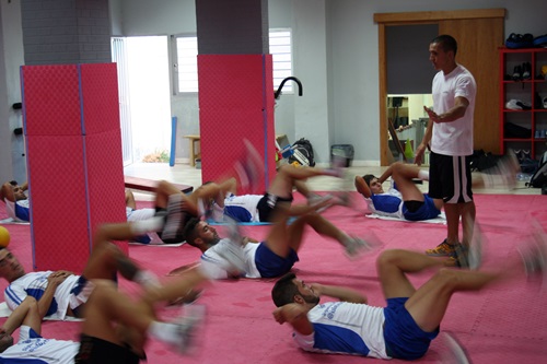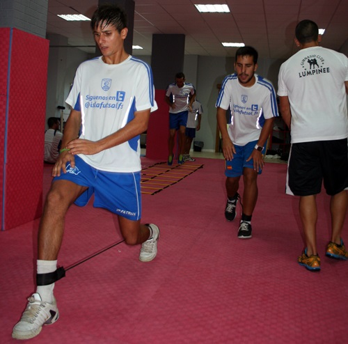 Saltos, ejercicios de coordinación, de equilibrio en esfuerzo, velocidad, estiramientos,…, toda una variedad dirigidas por David que se ganó a los isleños desde el primer momento, por su energía, conocimientos y simpatía. Después de una hora y media de ejercicios la sesión finalizó con los jugadores exhausto y quemando algo más que una simple jornada del calendario de la pretemporada.
