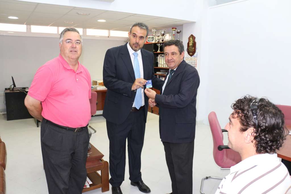El alcalde isleño, José Loaiza, renovó su compromiso con el San Fernando CD, retirando esta mañana en la sede del club su carné de socio para la temporada 2014-2015. Fue el presidente de la entidad azulina, Daniel Luna, quien hizo entrega al primer edil isleño de su carné que le acredita como socio de número.