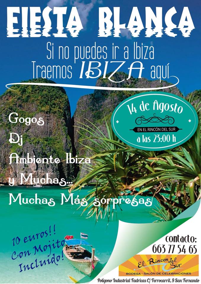 El próximo 14 de agosto a las 23.00 horas en El salón de celebraciones El Rincón del Sur de San Fernando, en la calle Ferrocarril nº9, (Polígono Fadricas) , tendrá lugar una Fiesta Blanca.