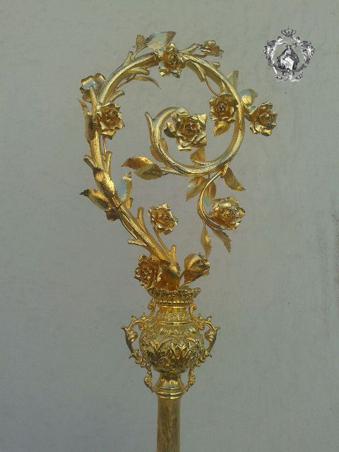 Tanto la vara como los cayados han sido realizados en plata sobredorada por el taller “Delgado López” de Sevilla (se anexa foto).