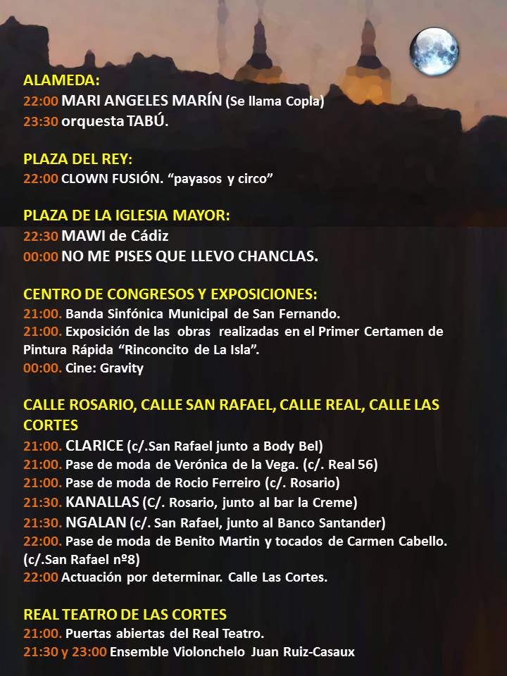El Primer Teniente de Alcalde y Delegado General del Área Municipal de Promoción de la Ciudad, el andalucista Fran Romero, ha recordado que mañana las calles y plazas de La Isla acogerán una nueva edición de la Noche Blanca. El Delegado indica que esta cita alcanza ya su quinta edición y explica que este es el segundo año en el que la Delegación Municipal de Cultura cuenta con la estrecha colaboración de la Asociación de Comerciantes de San Fernando (ACOSAFE) en la organización de este evento.