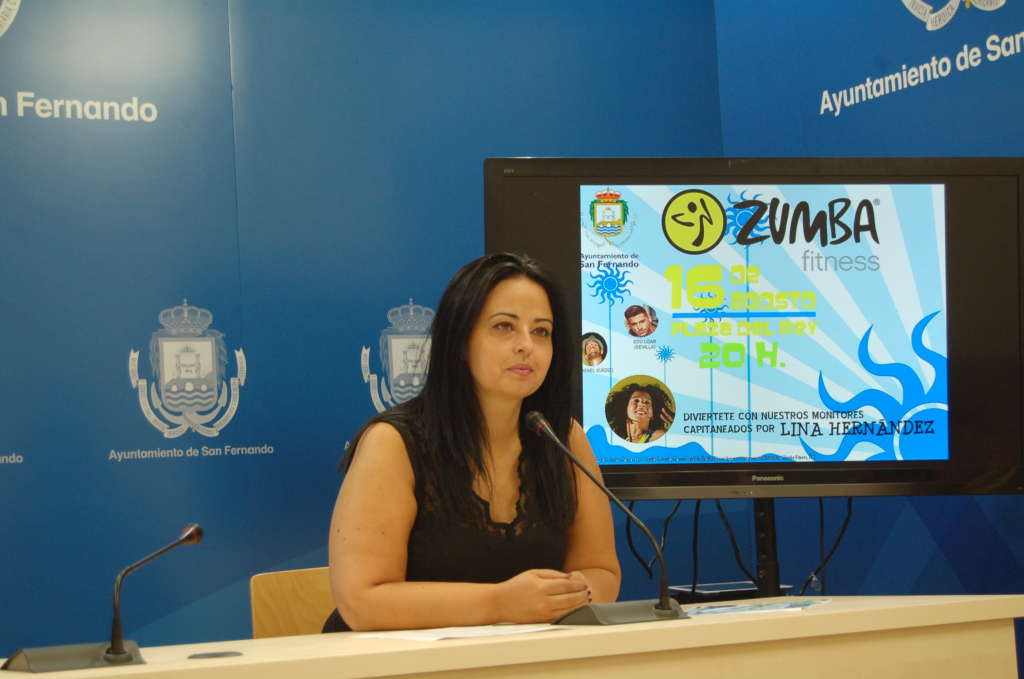 La delegada de Participación Ciudadana del Ayuntamiento de San Fernando, África Cuevas, ha presentado hoy una nueva actividad lúdica que se une a la programación de ocio estival que impulsa el Ayuntamiento de San Fernando para el presente verano 2014. Se trata de una ‘masterclass’ (clase impartida sobre una determinada disciplina por un experto en la misma) de la disciplina conocida como Zumba, una modalidad de ejercicio físico originaria de Colombia que mezcla el fitness con el baile cuyo objetivo es mantener el estado físico saludable, fortalecerlo y darle flexibilidad a través de una serie de movimientos aeróbicos, todo ello haciendo uso de los principales estilos musicales latinos: salsa, merengue, cumbia o samba.