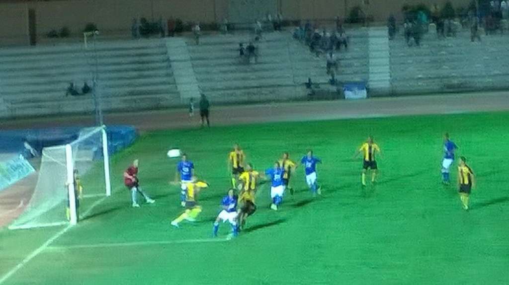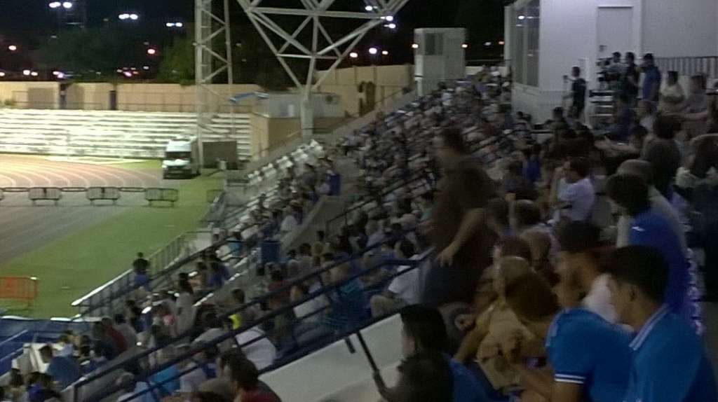 Excelentes jugadas por parte de ambos equipos que acrecentaron la tensión en las gradas de cara a un primer gol de Dani Martínez hacia el minuto 19, tras jugada por banda derecha. El partido acababa de empezar pero la puntería del jugador anticipó la goleada que el segundo tiempo supondría para este debut en casa del conjunto azulino. Así, tras