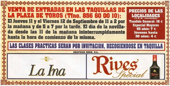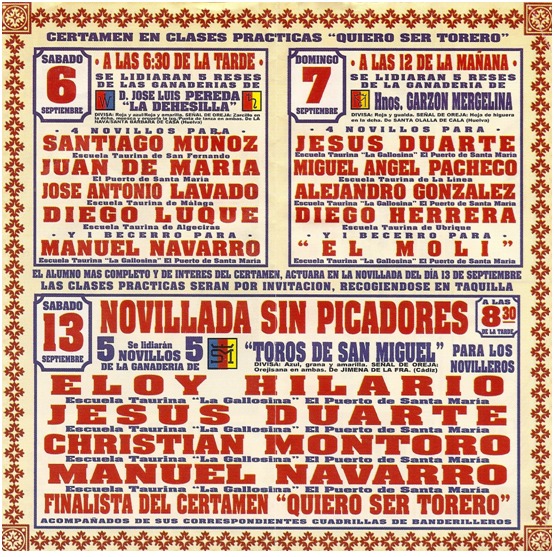Los días 6 y 7 de septiembre y una novillada sin picadores el día 13 de Septiembre.