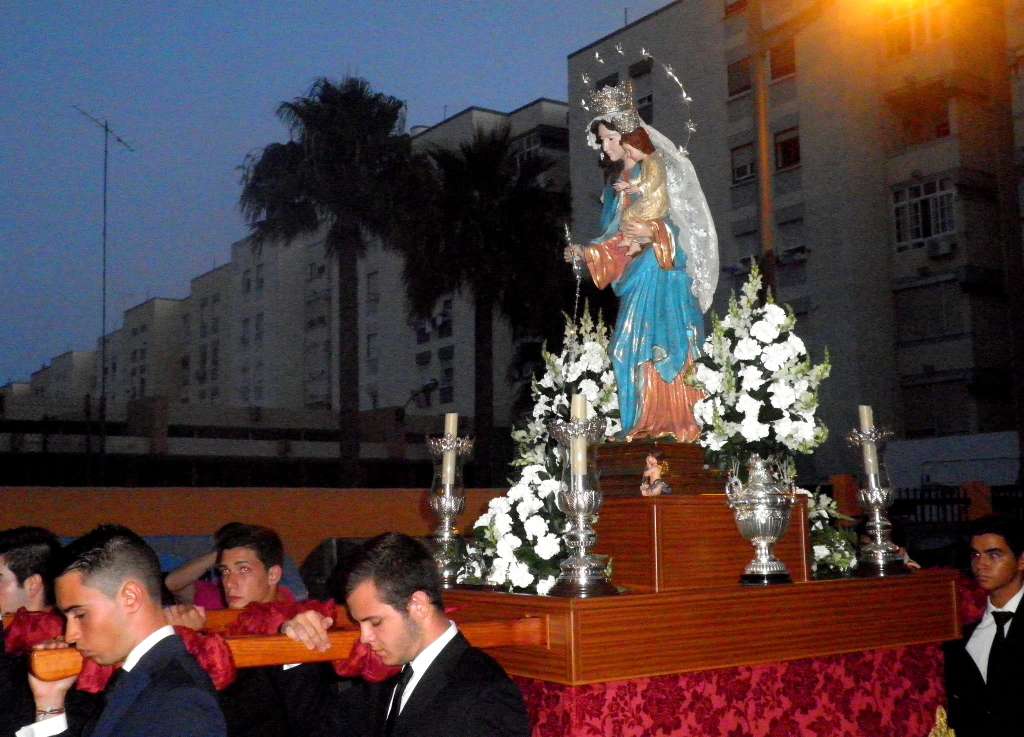Uno tras otro fueron sucediéndose todos los misterios del Santo Rosario, a su vez, alternados con las apropiadas piezas musicales que entonó la capilla musical durante el transcurrir de la parihuela por la feligresía. Algunas de ellas, versiones de conocidas marchas procesionales que apelaron a la nostalgia del buen número de cofrades que hasta allí acudieron para venerar a María Auxiliadora.