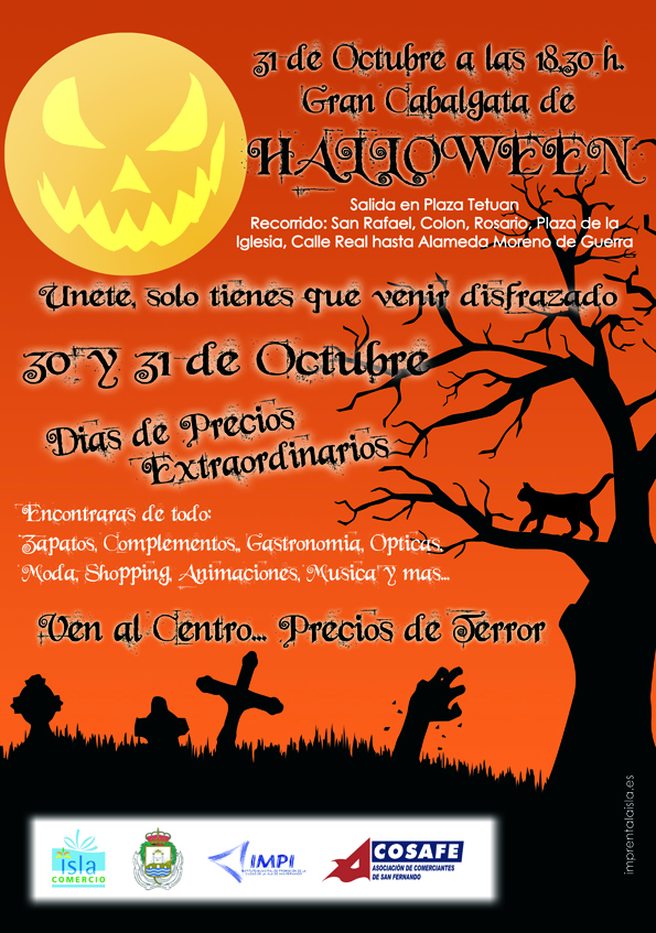La Asociación de Comerciantes de San Fernando (Acosafe) se suma a la celebración de la fiesta de Halloween, con una cabalgata que saldrá a las 18:30 horas de la Plaza de Tetuán y que seguirá por San Rafael, Colón, Rosario, Plaza de la Iglesia, calle Real hasta la Alameda Moreno de Guerra.