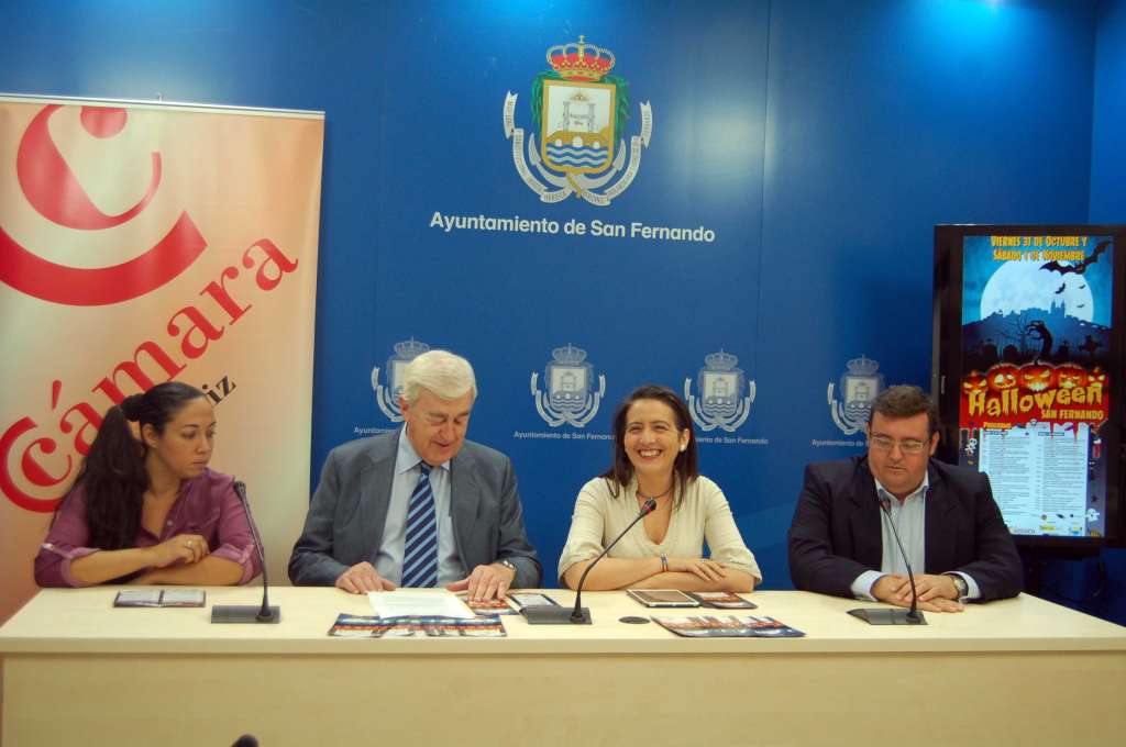 La teniente de alcalde de Comercio, Cristina Arjona, junto con el presidente de la Cámara de Comercio, Industria y Navegación de Cádiz, Ángel Juan Pascual, y Manuel Picardo y Gema Tacón, por parte de Asihtur, ha presentado la actividad ‘Halloween San Fernando’, una iniciativa que llevan a cabo Ayuntamiento y Asihtur con el apoyo de la Cámara de Comercio con el objetivo de fomentar el comercio y la hostelería del centro y que cuenta con un amplio programa que se desarrollará entre los días 31 de octubre y 1 de noviembre, todo tematizado con la estética de la popular festividad anglosajona, que si bien, tal y como aclaró la edil popular, “no es una tradición de nuestra tierra pero sí cuenta con mucho arraigo popular y tirón comercial entre el público, por lo que estimamos que puede ser un gran atractivo, aparte de ser la primera ciudad del entorno que lo celebra a este nivel”, añadió Arjona.