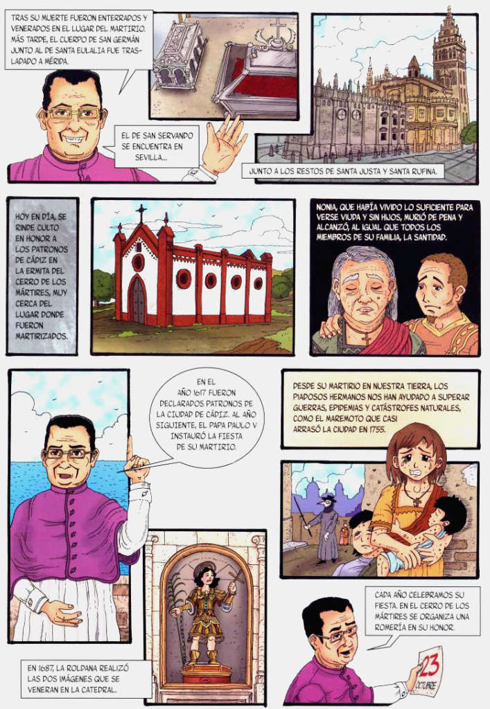 La historia de los patronos de la Diócesis de Cádiz en forma de cómic, esa ha sido la iniciativa tomada por el Cabildo Catedral para conmemorar este día en el que la iglesia gaditana celebra a estos hermanos como confesores de la fe en grandes tormentos, dando así ejemplo de ánimo y virtud.