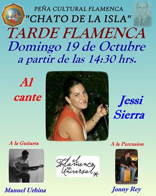 La joven isleña Jessi Sierra actuará este domingo día 19, a partir de las 14,30 horas, en la Peña Chato de La Isla, dentro de sus tardes flamencas. Estará acompañada a la guitarra por Manuel Urbina y en la percusión por Jonny Rey.