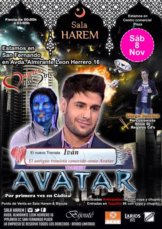 El nuevo tronista de Mujeres y Hombres y viceversa, Iván, antes conocido como ‘Avatar’ por el maquillaje característico de la película de James Cameron, visitará este sábado, 8 de noviembre, la popular Sala Harem.