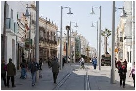 Y hace años se significaba por tener dos aceras en el tramo que va desde la Plaza de la Iglesia hasta la Alameda Moreno de Guerra. La de la derecha dirección Cádiz muy amplia. Y la de la izquierda algo más estrecha y memos transitada por aquello de la etiqueta que recibía entonces al considerarla como -la acera de los tramposos- de cuyo apelativo fácilmente se adivinaba -el por qué-  de su denominación y de su escasa concurrencia en esos tiempos difíciles y llenos de dificultades. Pero muy felices en cierto modo para la juventud de aquella época.