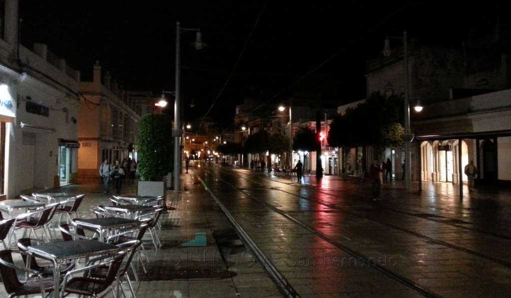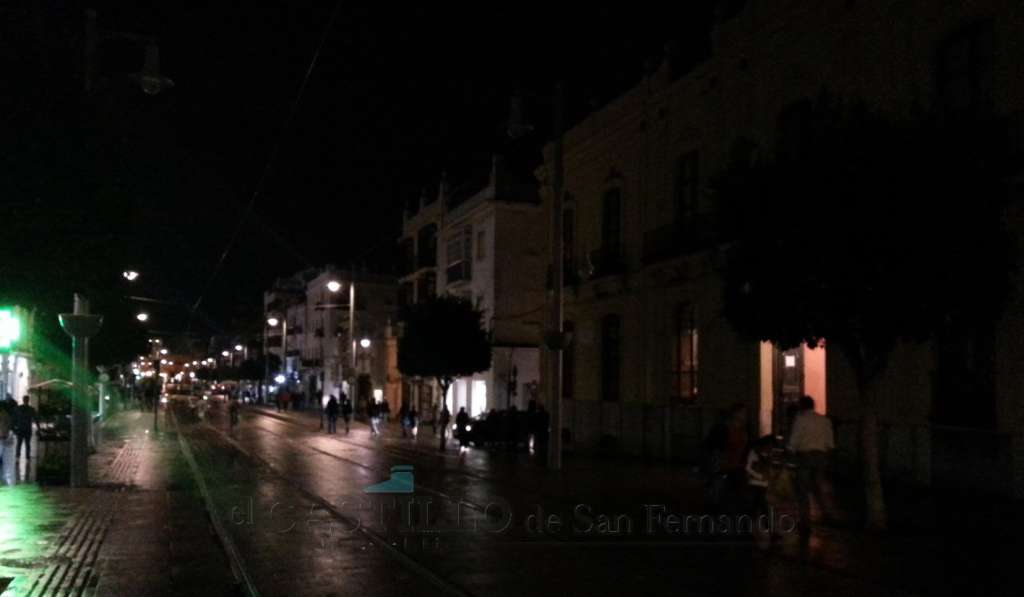 La principal vía de San Fernando, al menos hasta 2008, tuvo durante las obras focos en mástiles de madera para que los obreros pudieran trabajar. Con el avance de la obra, colocaron farolas, más propias de un puerto pesquero que de una calle noble y del siglo XVIII, cuya luz resultaba insuficiente. Así lo reclamaron los vecinos hasta que el Ayuntamiento obligó a la Junta de Andalucía a ampliar la potencia de las bombillas.