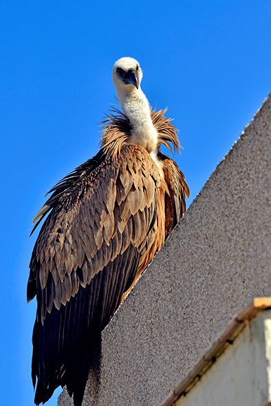 Un buitre, nada menos, es el ave que ha estado merodeando durante estos días los bloques de viviendas de la Avenida Al-Ándalus de San Fernando.