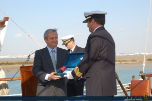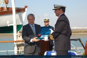 El presidente de Correos, Javier Cuesta Nuin, ha entregado hoy un nuevo matasellos dedicado al buque-escuela ‘Juan Sebastián de Elcano’ al Comandante del velero de la Armada, el capitán de navío Enrique Torres. A la ceremonia, celebrada a bordo del buque, que se encuentra atracado en su base del Arsenal Militar de la Carraca, en San Fernando (Cádiz), ha asistido el Almirante de la Flota, Santiago Bolíbar, y una delegación de directivos de la empresa postal.