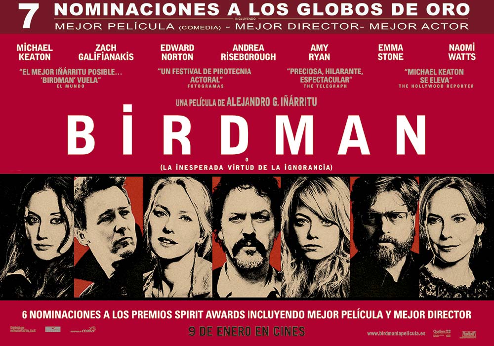 Con un formidable reparto formado entre otros por estrellas como Edward Norton, Emma Stone, Naomi Watts o Zach Galifianakis, se lleva todos los halagos el espectacular regreso de Michael Keaton tras unos años en el ostracismo y después de, como el personaje que interpreta, haber alcanzado la gloria como el superhéroe Batman en los films de Tim Burton. Su interpretación ya ha conseguido el prestigioso premio de la National Board of Review y la nominación a los Globos de Oro. Además el film ha conseguido nada menos que otras seis candidaturas a los dorados premios de la Asociación de la Prensa extranjera en Hollywood, entre las que destacan la de mejor película, director, guión y secundarios – Norton y Stone-. Llegará a España en la primera quincena de 2.015.