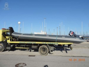 Una vez abordada y en una primera inspección ocular se comprobó cómo la misma transporta una gran cantidad de bultos de arpillera y rafia, de los comúnmente utilizados para el transporte de hachís. Acto seguido fueron detenidos sus tres tripulantes, a quienes se les imputa un presunto delito de contrabando y contra la salud pública.