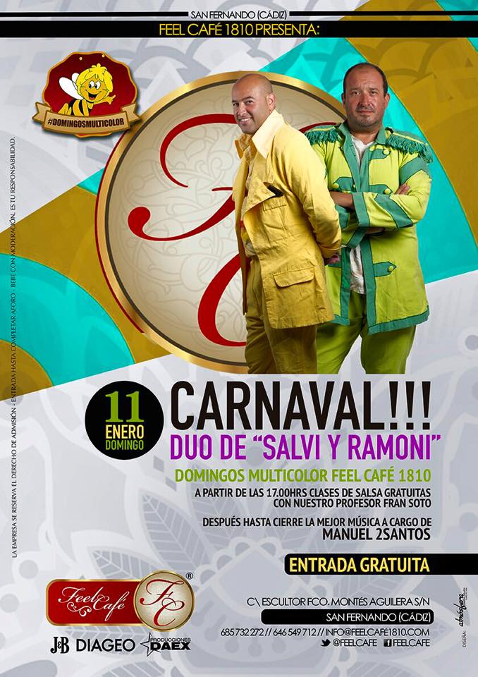 Porque multicolor es el término que mejor define al variado programa que el establecimiento prepara de cara a la próxima jornada dominical, la cual tendrá como protagonistas indiscutibles a dos invitados de excepción. Dos invitados que llevarán todo el arte del Carnaval a Feel Café como antesala a una de las celebraciones más importantes para La Isla: el dúo de Salvi y Ramoni, a partir de las 19:00 horas.